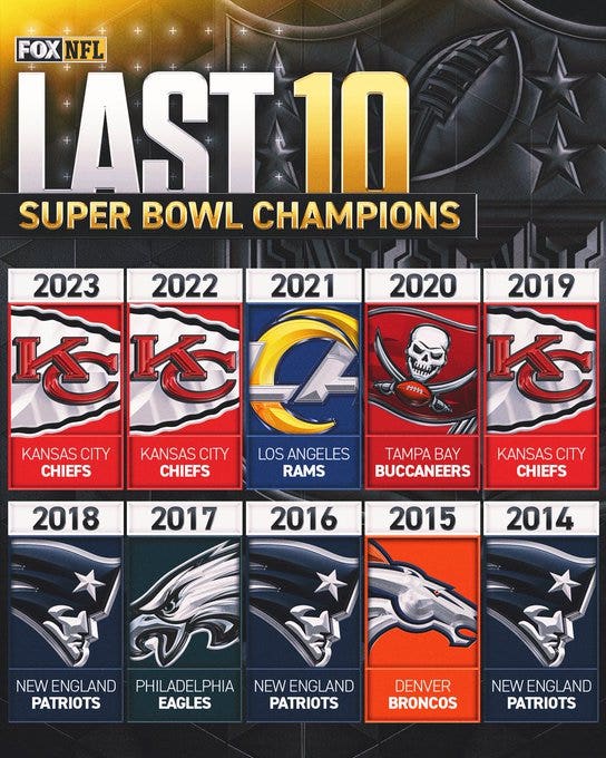 The Chiefs are winning their third straight Super Bowl, and it will come against the Lions. The Chiefs have a single question about this season: do they arrive into the postseason with a healthy roster? Their offense is better this season with Xavier Worthy and Hollywood Brown, while the defense should not see much of a drop-off in 2024. The Lions made the NFC Championship Game last season and played the 49ers tough. It’s a well-constructed roster and they are primed for the next step.