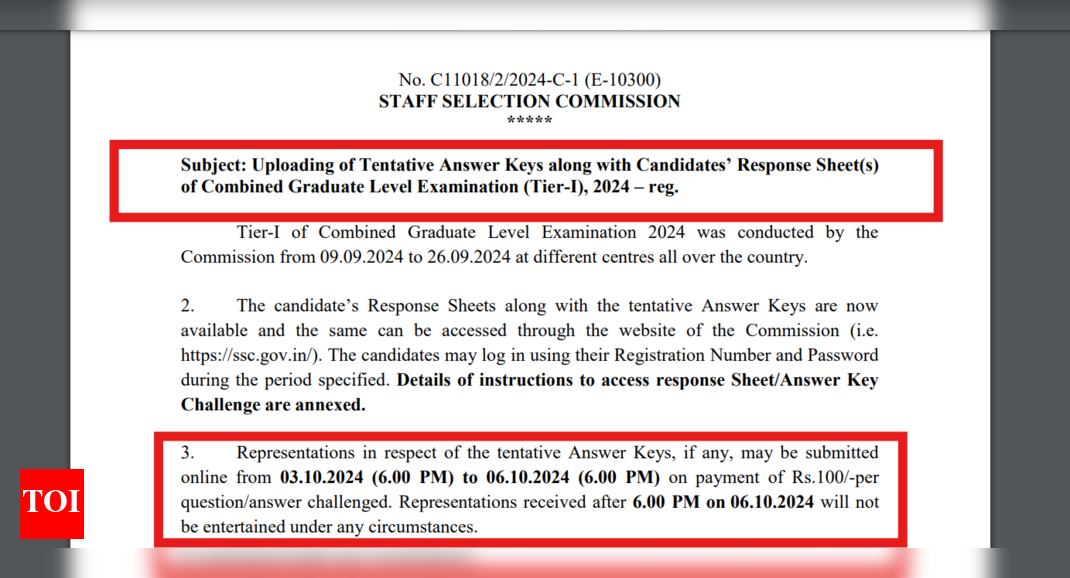 SSC CGL Answer Key 2024 released for Tier 1 exam, raise objections by Oct 6: Direct link here